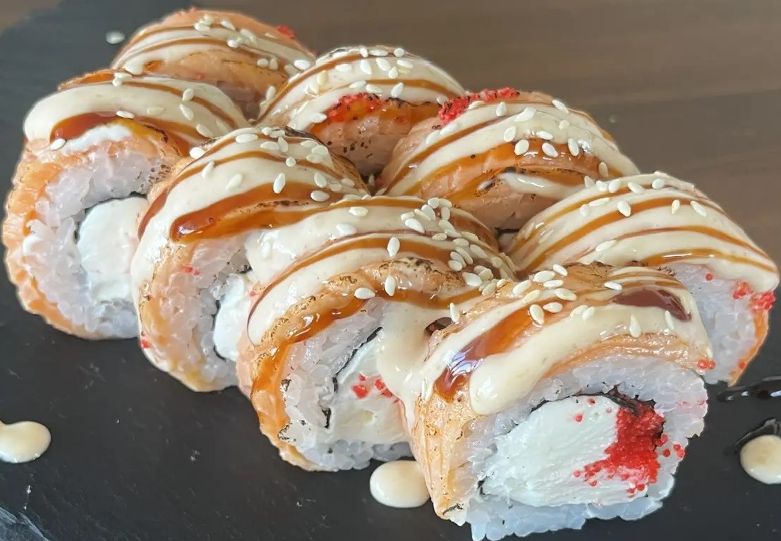Откройте для себя вкуснейшее сочетание традиционных японских ингредиентов! Ролл с нежным рисом, хрустящим нори, деликатесом из сливочного сыра и красной икрой (масаго). Форель, обработанная огнем, приобретает неповторимую структуру и аромат, подчеркнутый дымностью специального соуса. Сладковатый унаги и легкие нотки белого кунжута завершают эту восхитительную композицию. Наслаждайтесь гармонией вкусов вместе с нами!