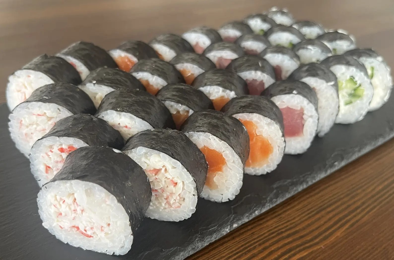 Маки ролл (сыр, огурец), Маки лосось, Маки тунец, Маки краб, 32 шт.